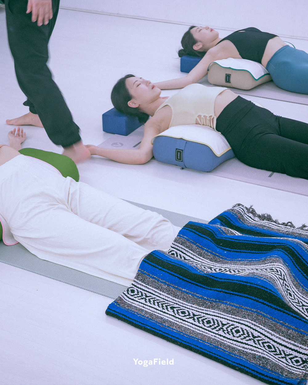 "리스토러티브 요가는 몸과 마음이 깊이 이완될 수 있도록, 요가 도구를 활용해